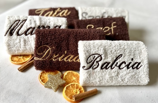 - ręcznik do rąk z napisem Babcia - ręcznik ecru, Dziadek - ręcznik brązowy, rozmiar: 30x50 cm,