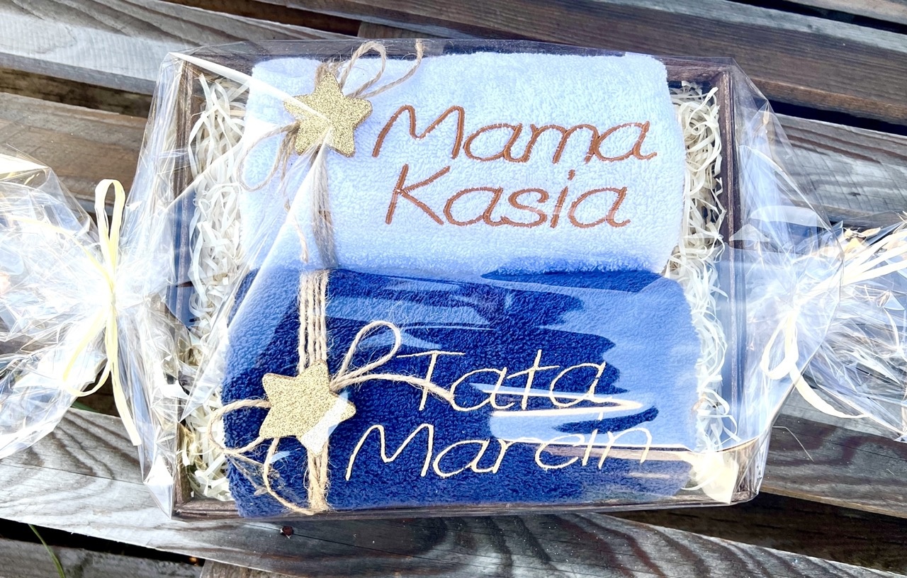 Wyjątkowy prezent na Boże Narodzenie dla dwojga - zestaw ręczników z Twoim haftem. Elegancki, a jednocześnie praktyczny zestaw, który ucieszy obdarowane osoby.