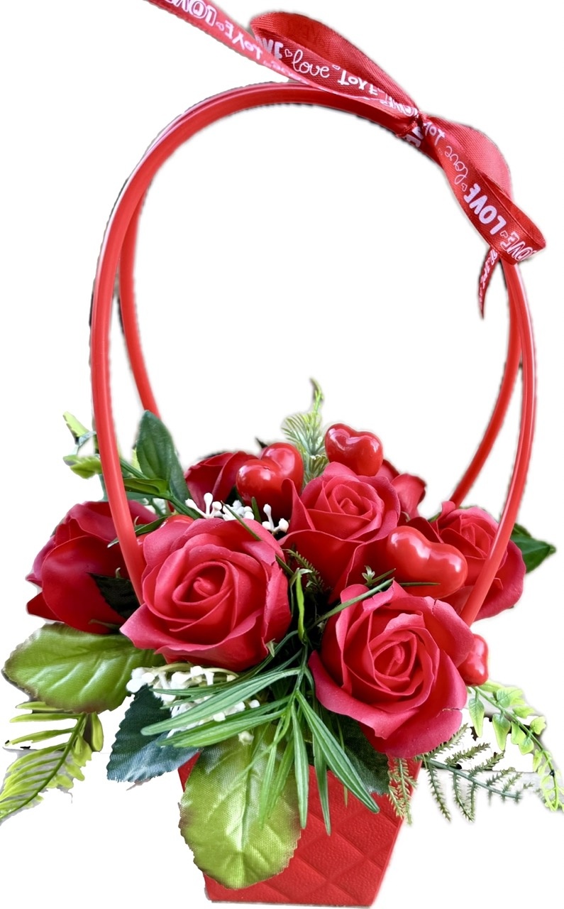 Uroczy bukiet mydlany w czerwonym flower box-ie. Idealny prezent dla Twojej Walentynki.