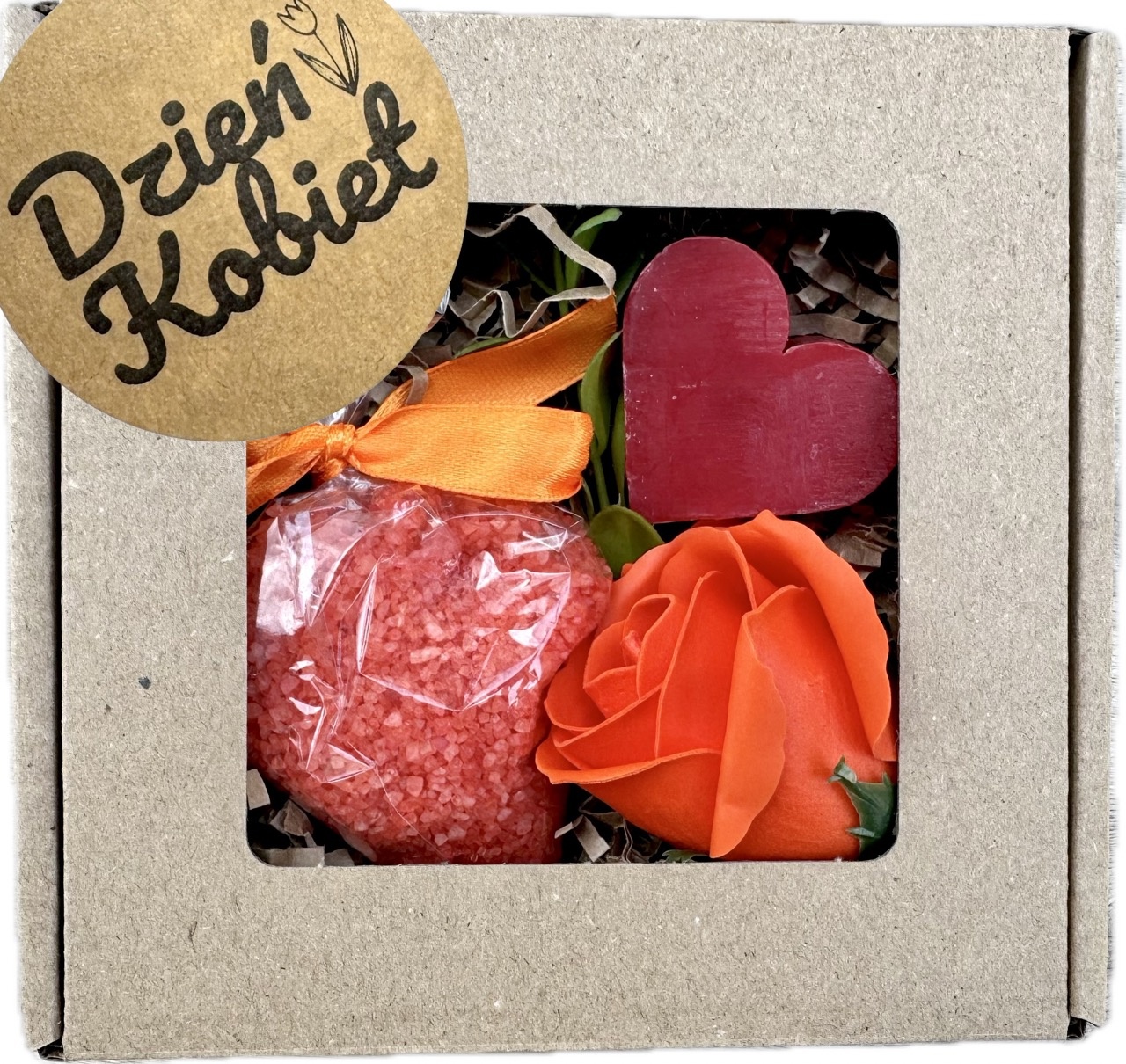 - pudełko z okienkiem i napisem "Dzień Kobiet", rozmiar 13x13 cm.