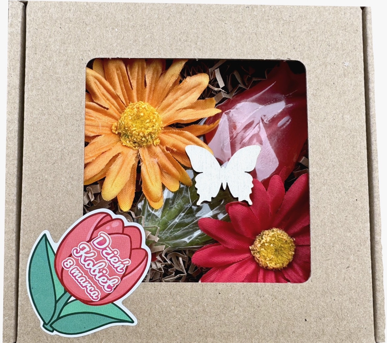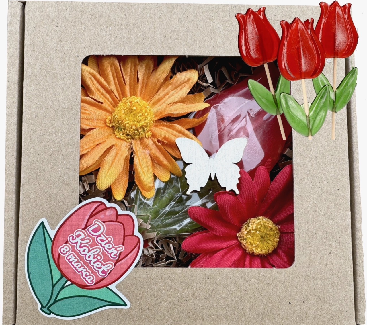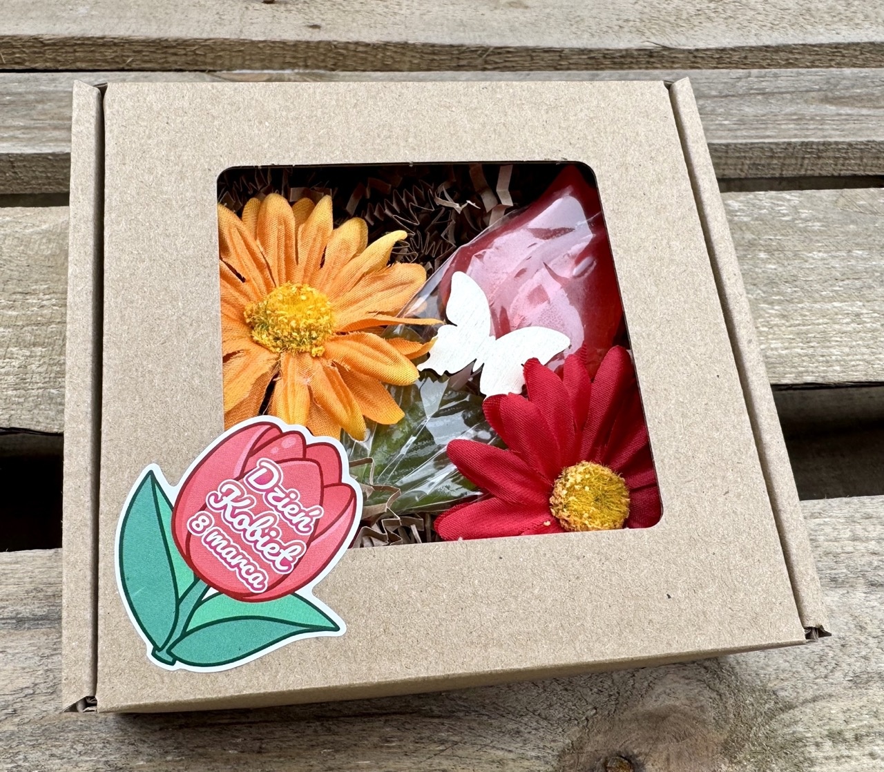 - napis na pudełku, naklejka Dzień Kobiet - 8 marca,