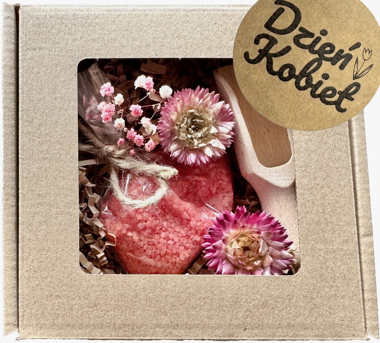 - pudełko z okienkiem i napisem "Dzień Kobiet", rozmiar 13x13 cm.