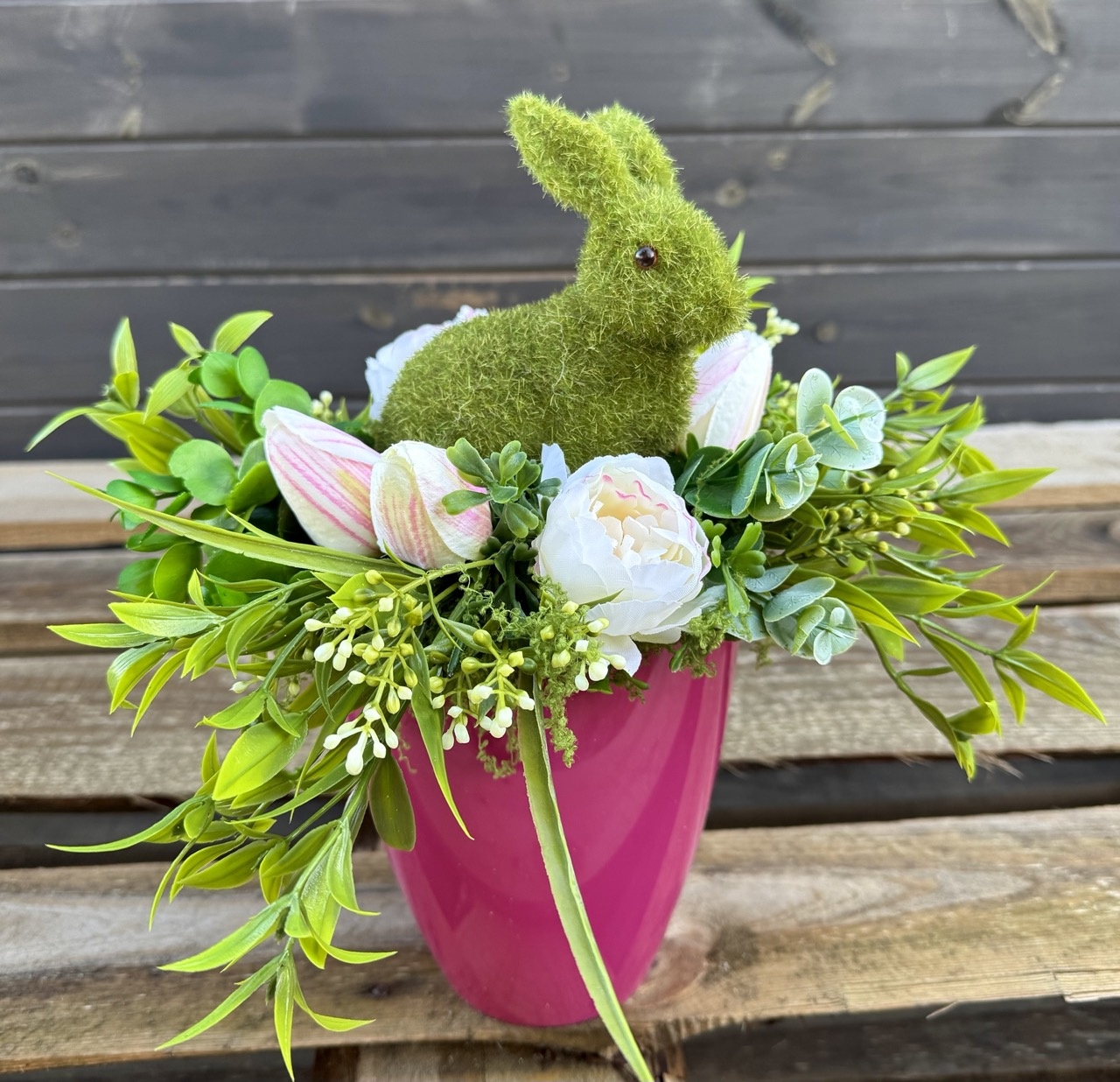 Oferujemy Państwu piękny, wielkanocny stroik w skład którego wchodzi: