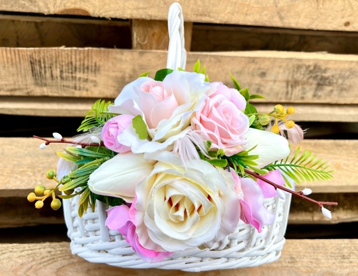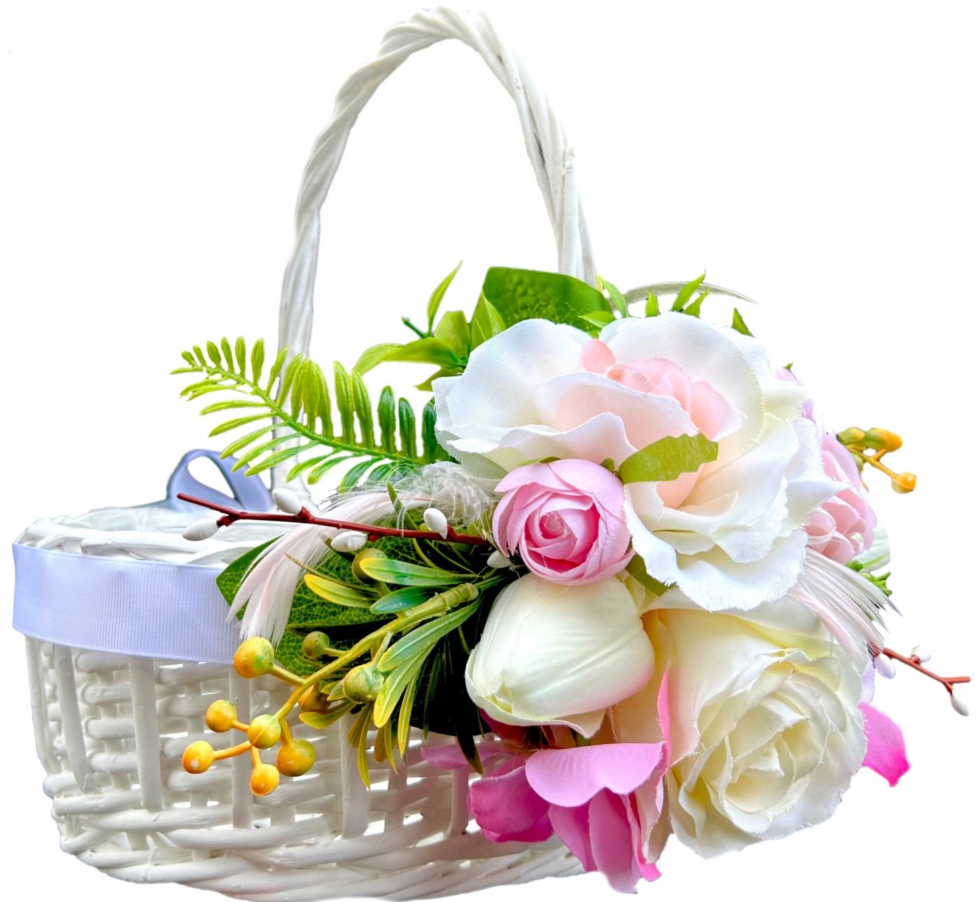 - dekoracja jest mocowana do koszyka za pomocą wstążeczek.