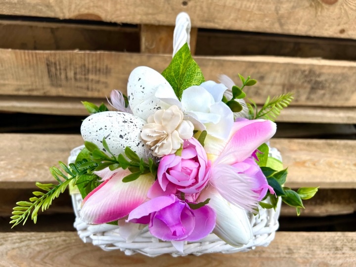 Oferujemy Państwu pięknie dekorowany koszyczek do święconki lub na owoce/ słodycze, który idealnie sprawdzi się na stole wielkanocnym: