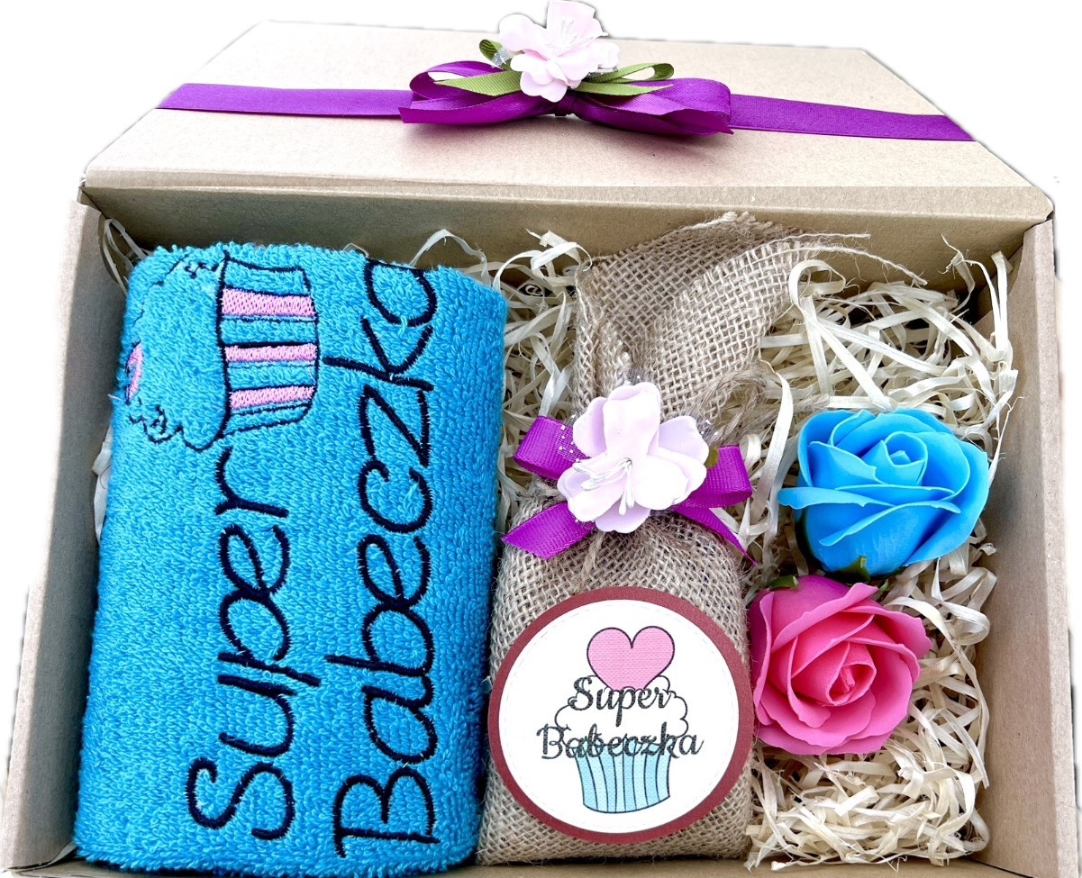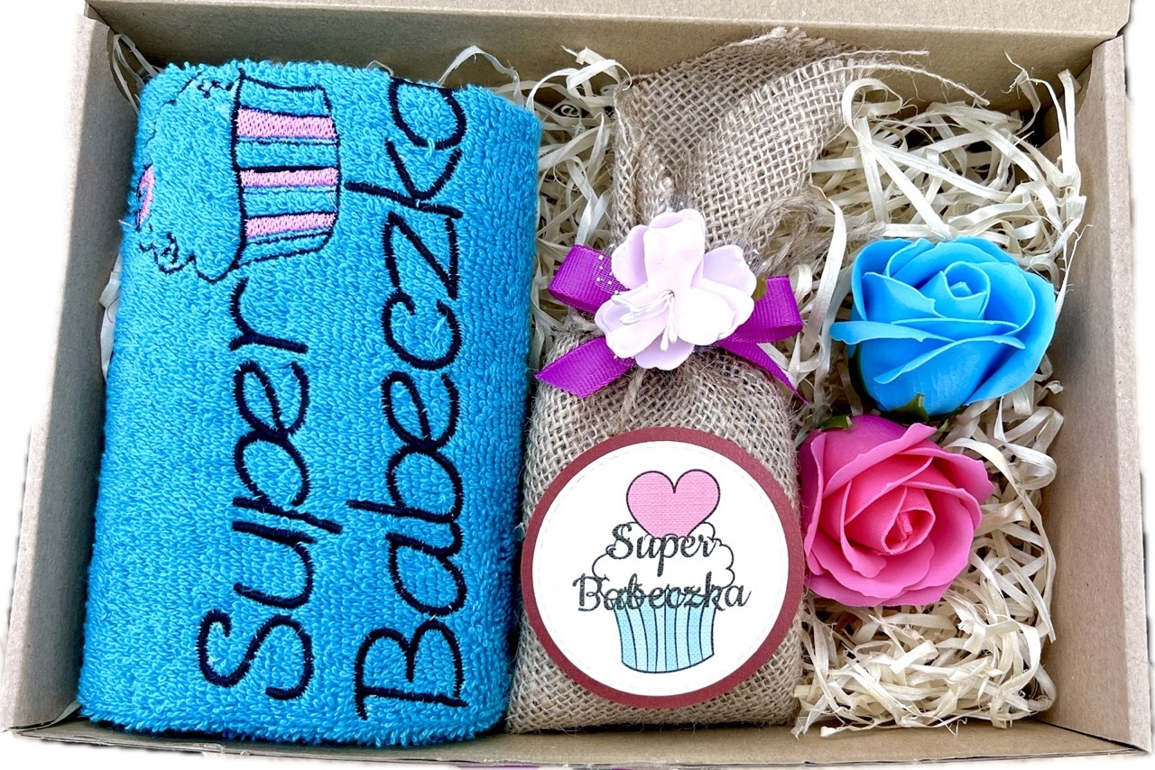 - śliczny ręcznik do rąk (30x50 cm) z haftem Super Babeczka, gramatura 500g/m2,
