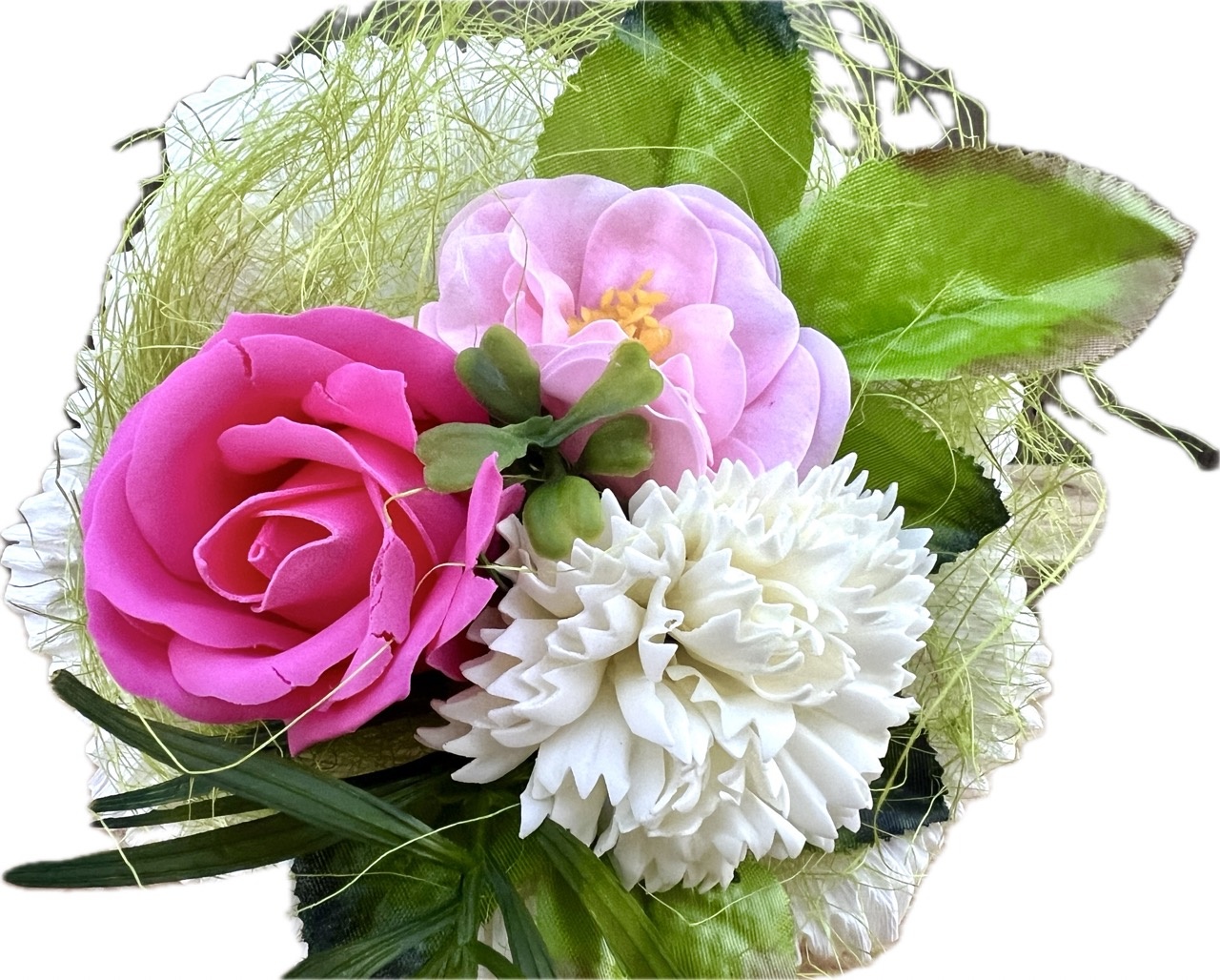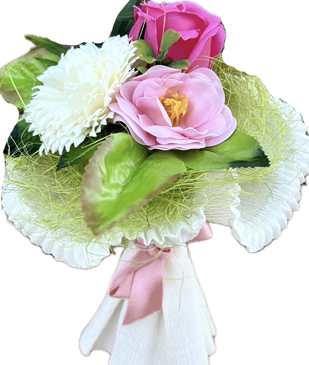 ❤️ piękne pachnące, duże mydlane kwiaty w odcieniach różu i ecru w otoczeniu ozdobnego sizalu i sztucznych dodatków zielonych, całkowita wysokość i średnica to około 18 - 20 cm,