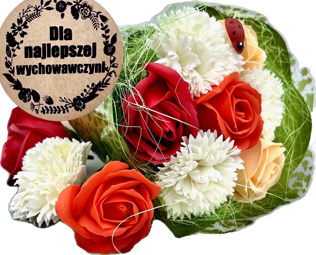 Wyjątkowy, oryginalny, piękny bukiet z kwiatów mydlanych, który zachwyci każdego. Będzie cieszył oko o wiele dłużej niż standardowy bukiet.