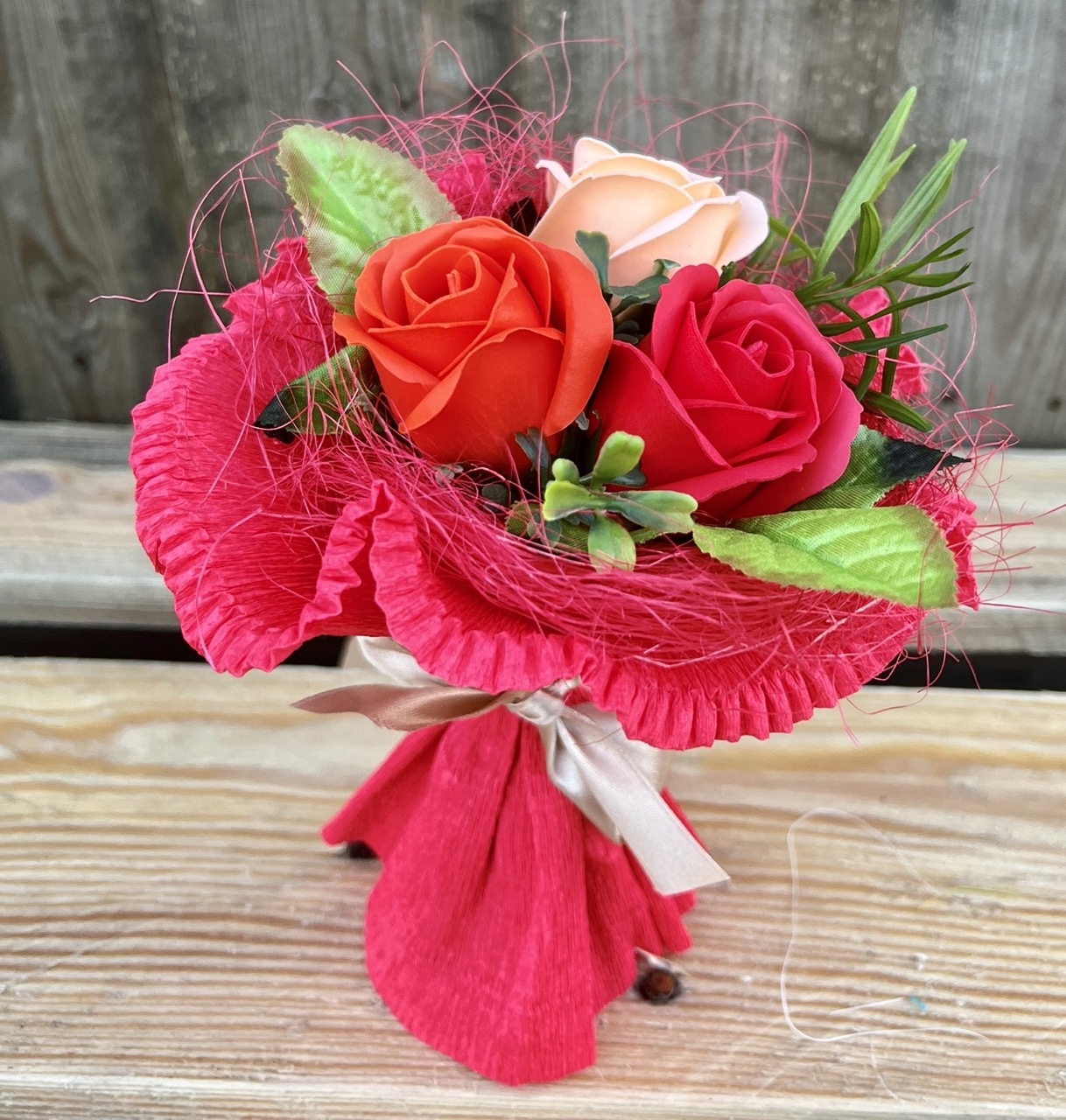 Otrzymujesz uroczy prezent gotowy do wręczenia! Mydlany bukiet zachwyci każdą panią swoim wyglądem i zapachem.