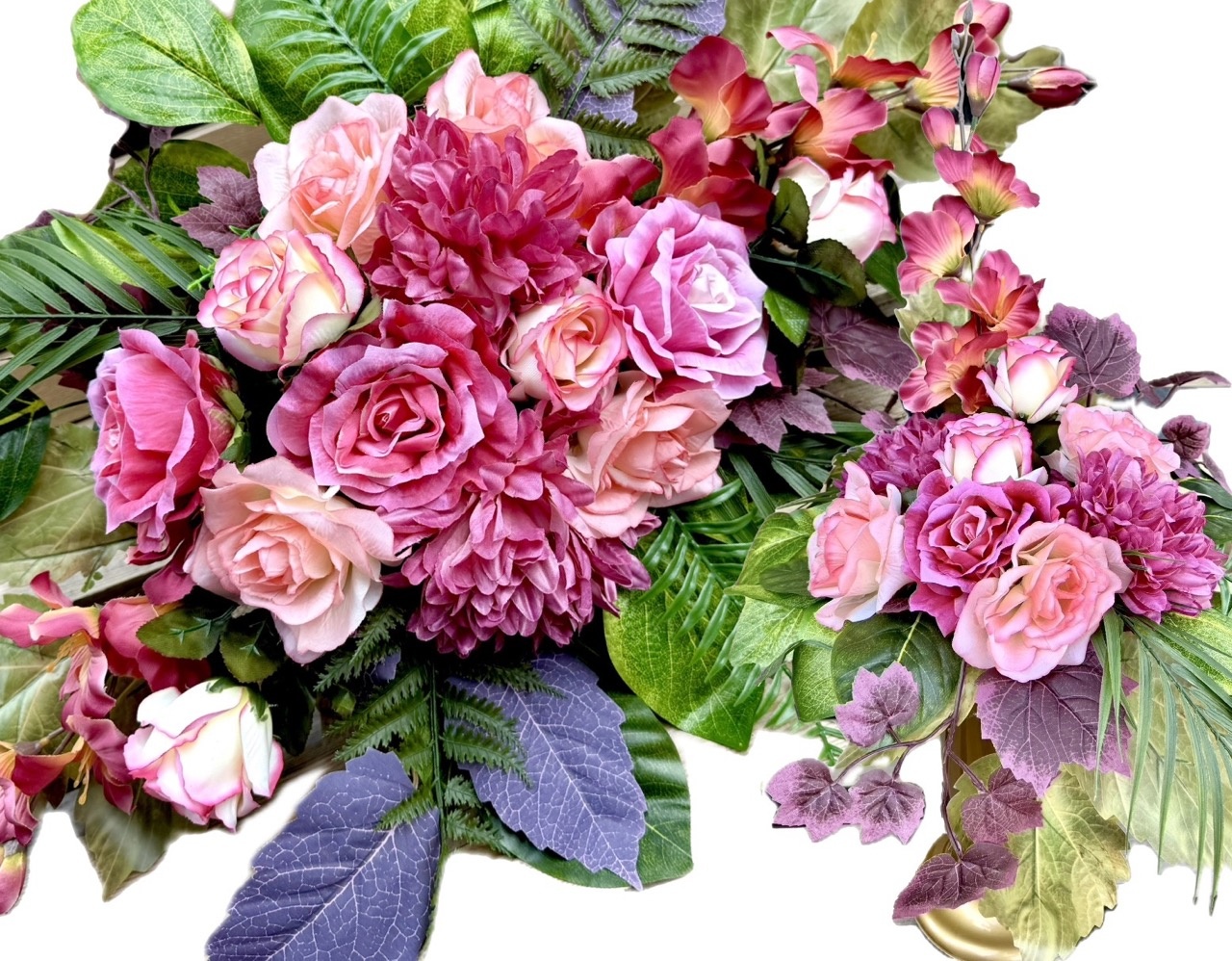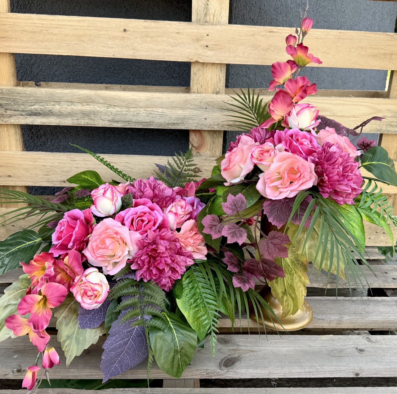 Duża, bogata, piękna wiązanka i bukiet na grób w pięknych kolorach. WYGLĄDA JAK ŻYWA! Wykonana z kwiatów oraz sztucznych dodatków wysokiej jakości.