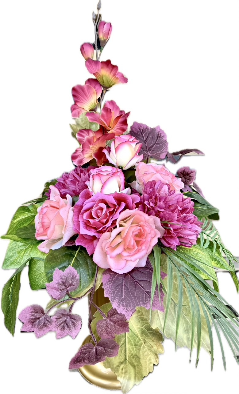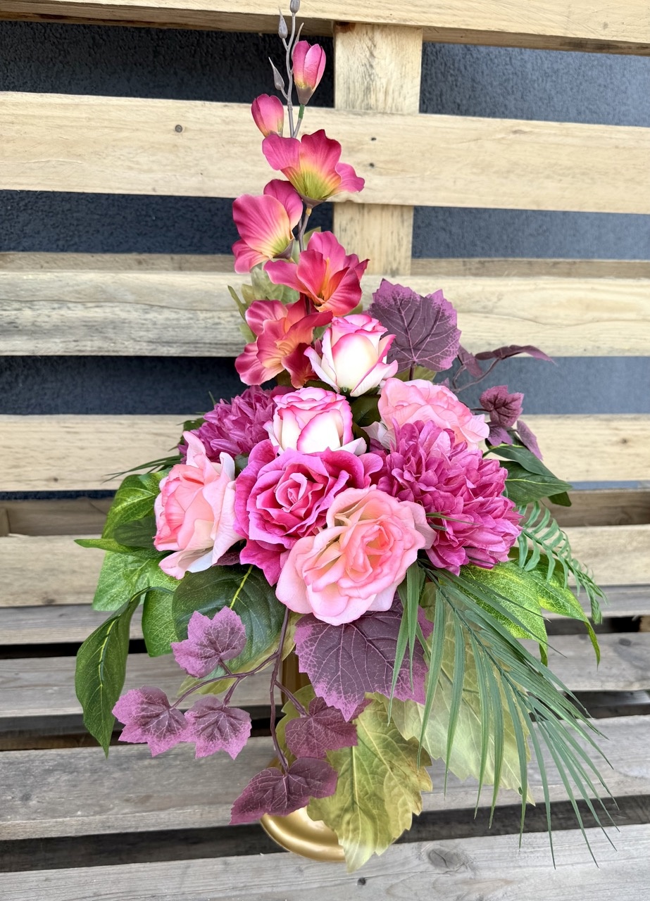 Duży, bogaty, piękny bukiet na grób w pięknych kolorach. WYGLĄDA JAK ŻYWA! Wykonany z kwiatów oraz sztucznych dodatków najwyższej jakości.