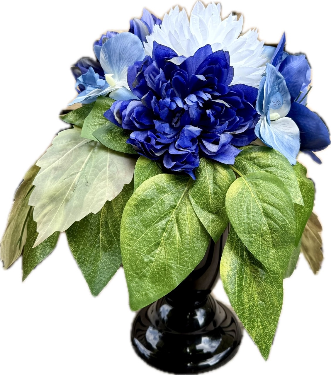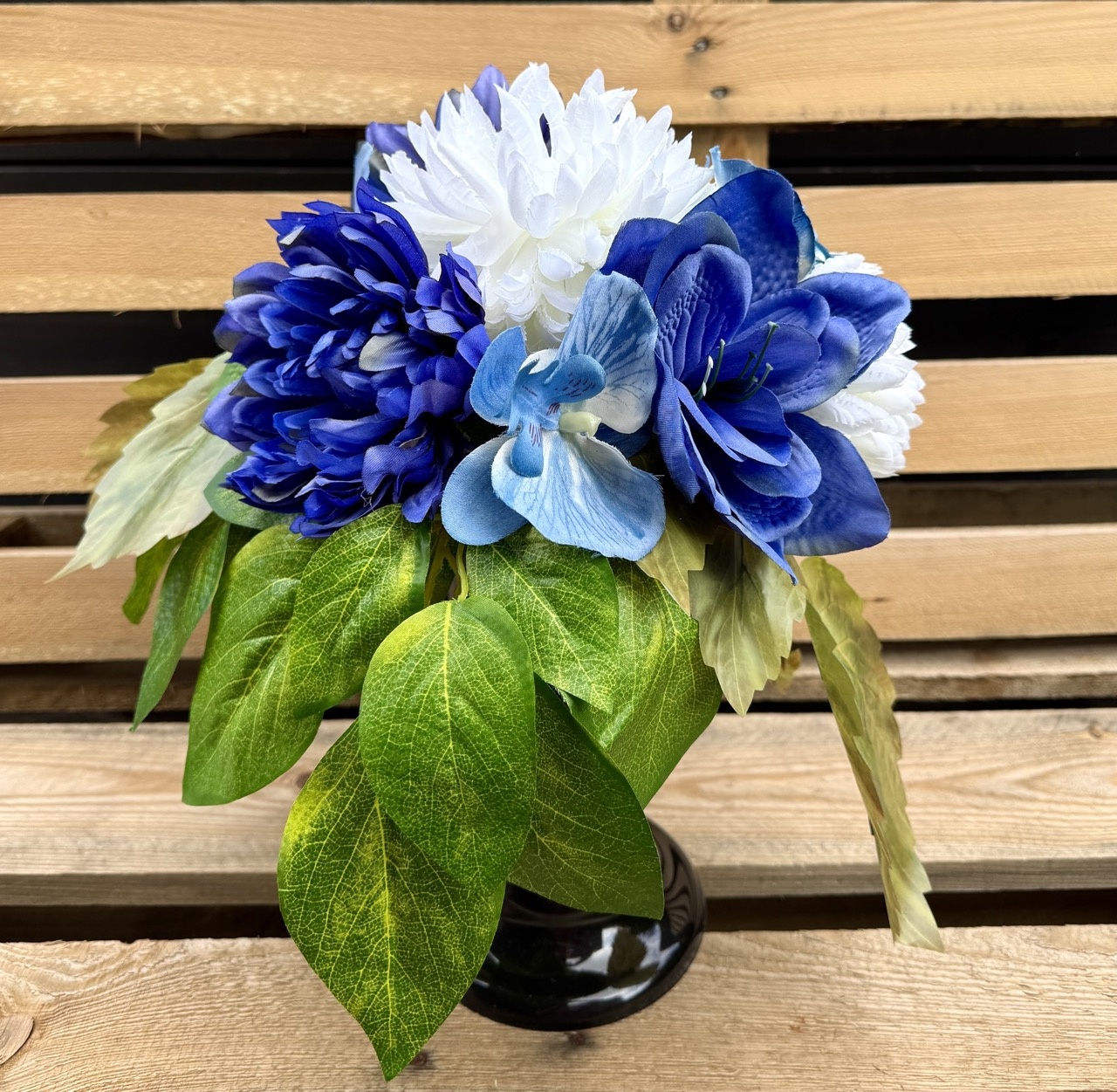 Duży, bogaty, piękny bukiet na grób w jesiennych kolorach. Wykonany z kwiatów oraz sztucznych dodatków wysokiej jakości.