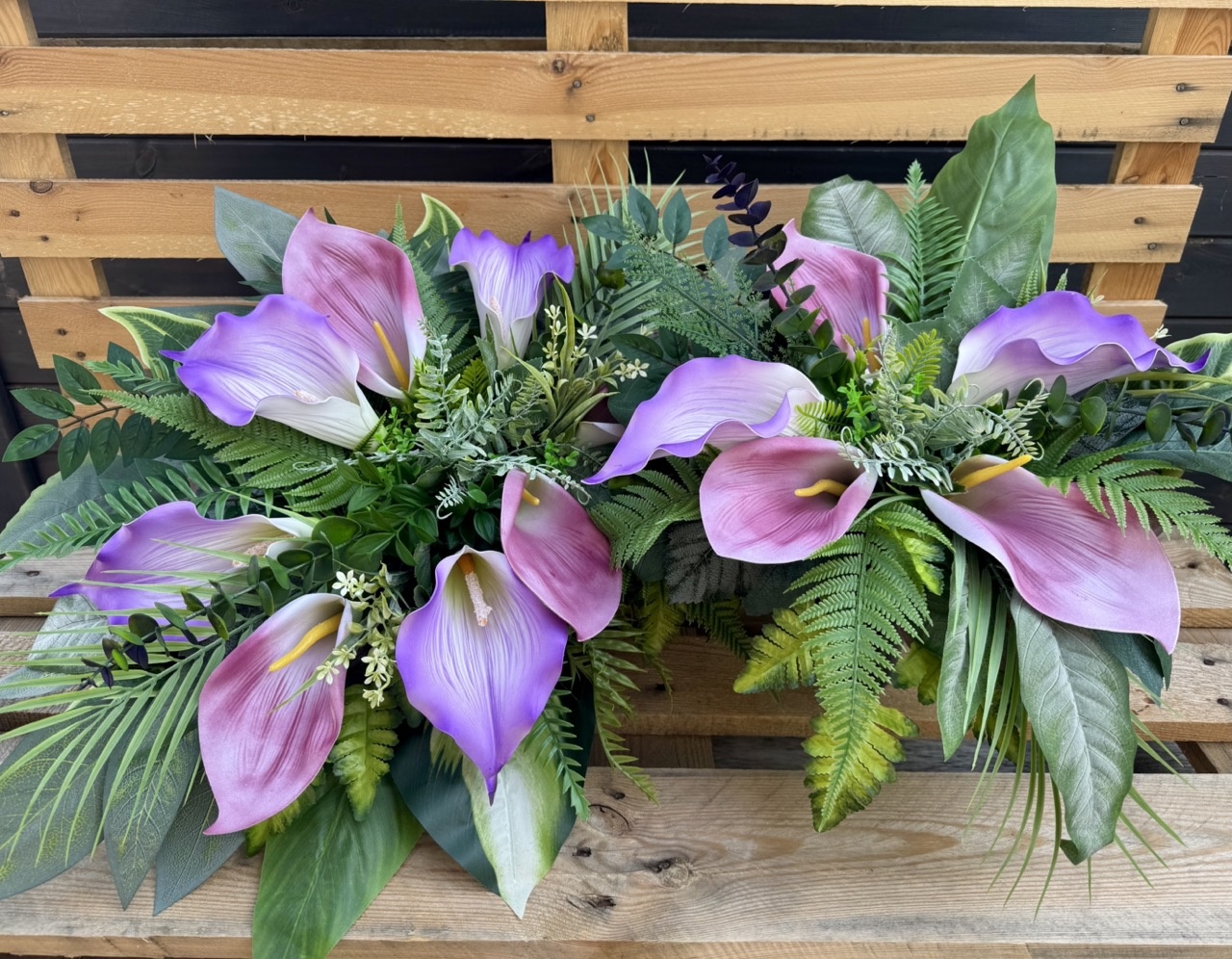 Duża, bogata, piękna wiązanka i bukiet na grób z najwyższej jakości, sztucznych dodatków florystycznych.