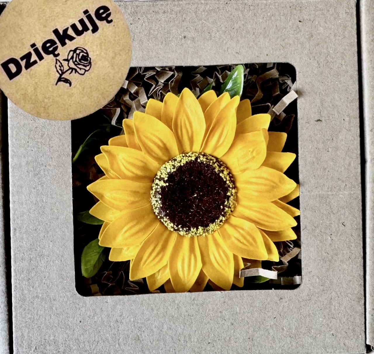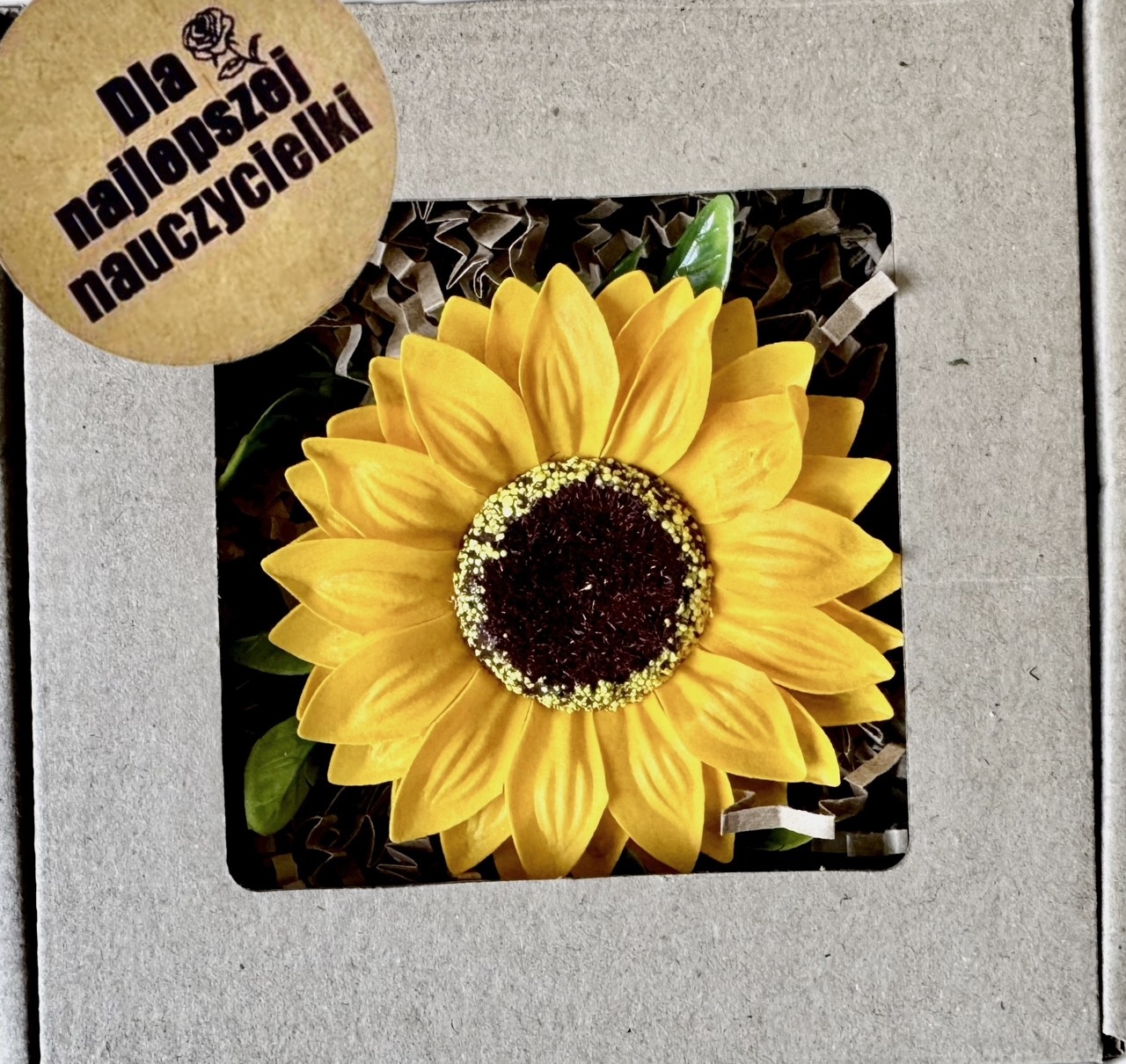 Otrzymujesz uroczy prezent gotowy do wręczenia! Mydlany słonecznik zachwyci swoim wyglądem i zapachem.