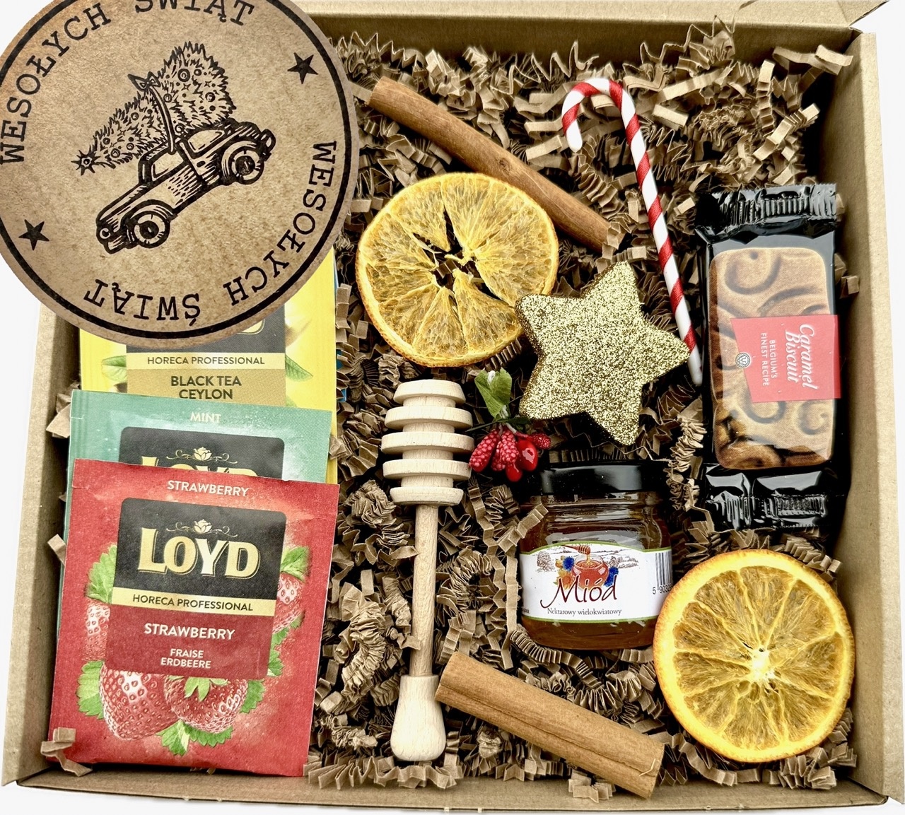 ❤️ Napis na pudełku Wesołych Świąt - losowo ze świątecznym autem lub reniferem