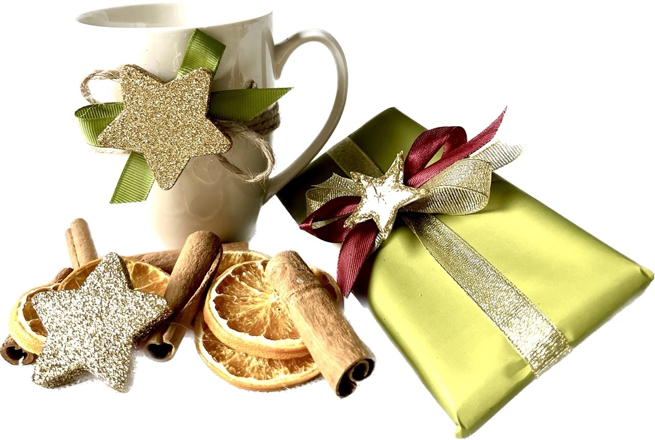- suszone plastry pomarańczy i laski cynamonu nadające charakter i zapach świąt,
