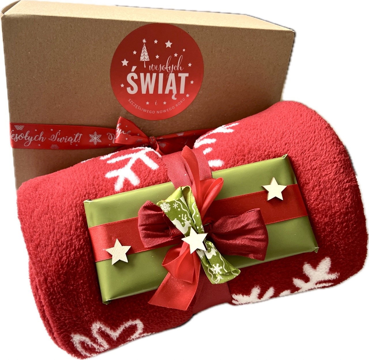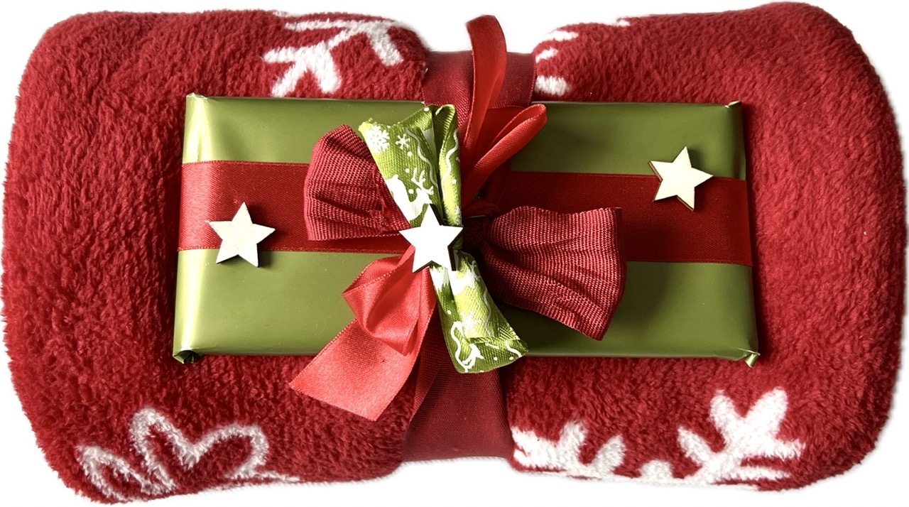 - wyjątkowo miękki, uroczy kocyk ze świątecznym wzorem na całości, kolor czerwony, rozmiar 130x160 cm,