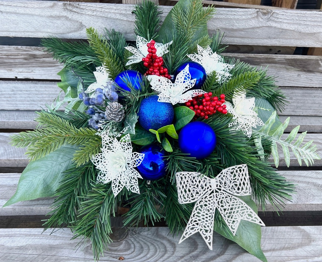 Piękna wiązanka świąteczna - kompozycja, która nada świąteczny klimat na grobie bliskiej osoby.